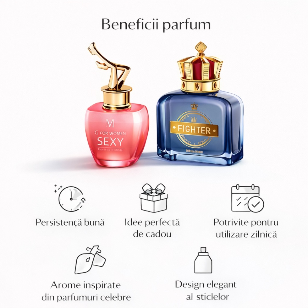 Acest produs conține parfumuri inspirate din creații celebre. Produsele nu sunt asociate sau aprobate de brandurile originale. Denumirile sunt utilizate exclusiv pentru a descrie inspirația olfactivă a parfumurilor.