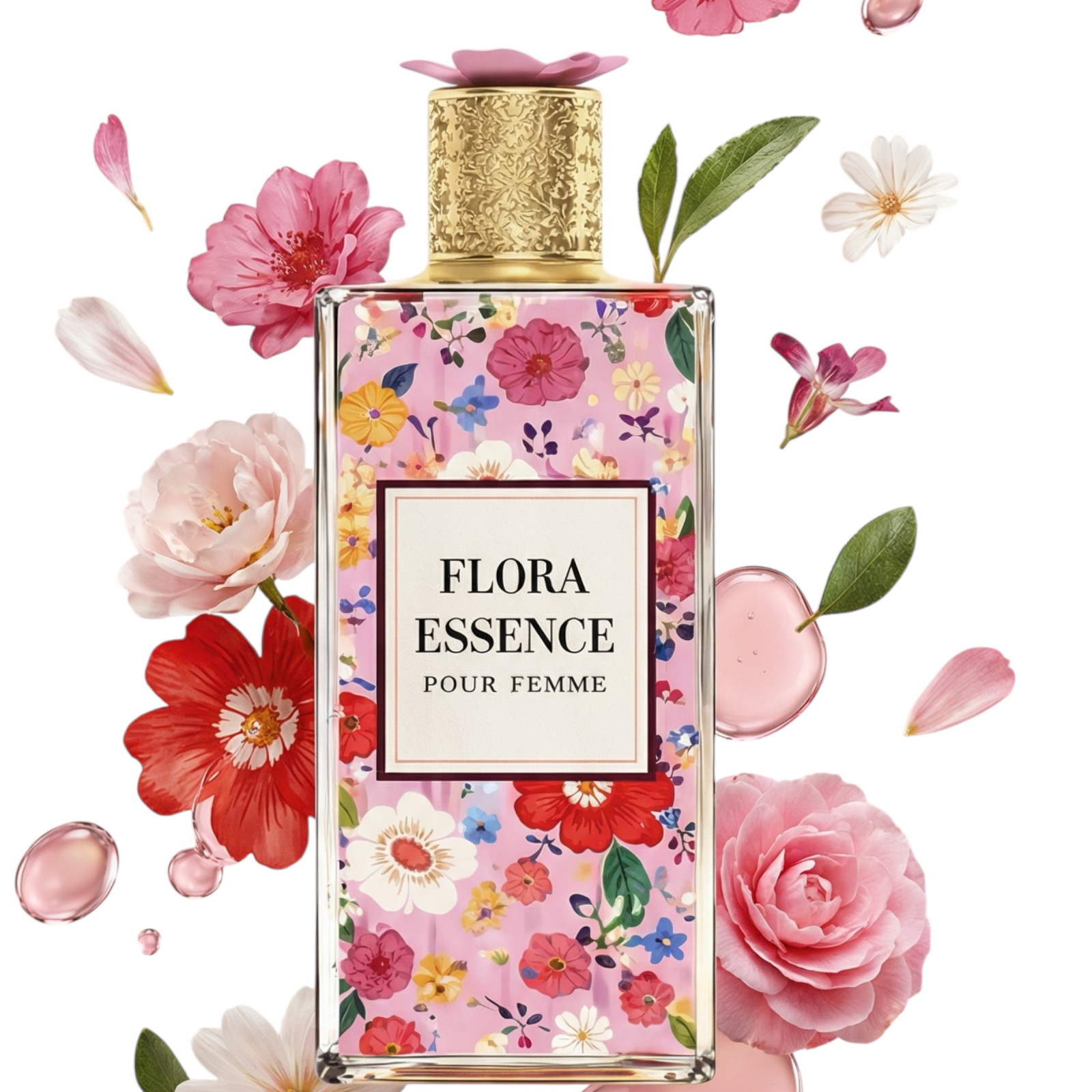 Flora Essence este un parfum dulce și floral, creat pentru femeile care iubesc eleganța, rafinamentul și senzația de a fi admirate. Aroma sa modernă și luminoasă oferă un echilibru perfect între prospețime, dulceață și senzualitate.